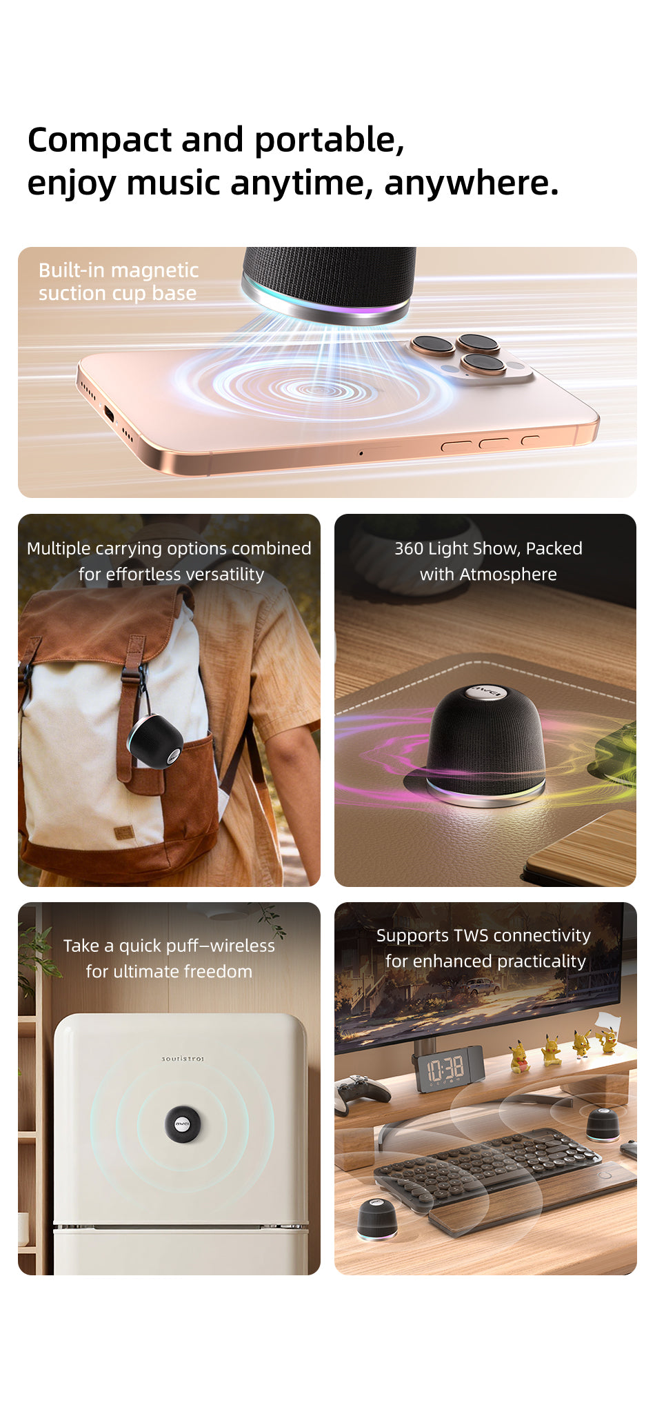 Awei KA53 Magnetic Mini Suctions Bluetooth Speaker